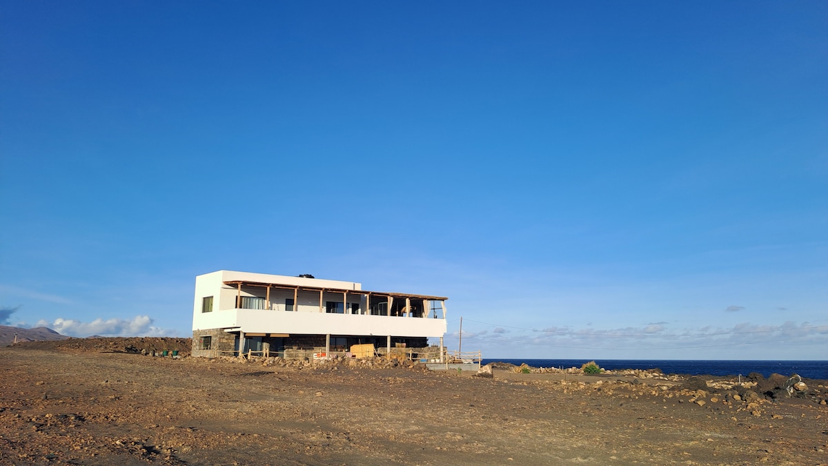 At the exit of Cruzinha, the house is independant and have a sea view ideally exposed (sun all day). A bedroom with a double bed (quality mattress, wardrobe) with sea view - a dining room with an equipped kitchen (table for 2 people, fridge, freezer, crockery, 4-burner gas hob, sink, electric kettle) - a bathroom with hot water, shower, sink and separate toilet. Private terrace with sea view. GPS: 17.168115, -25.165849