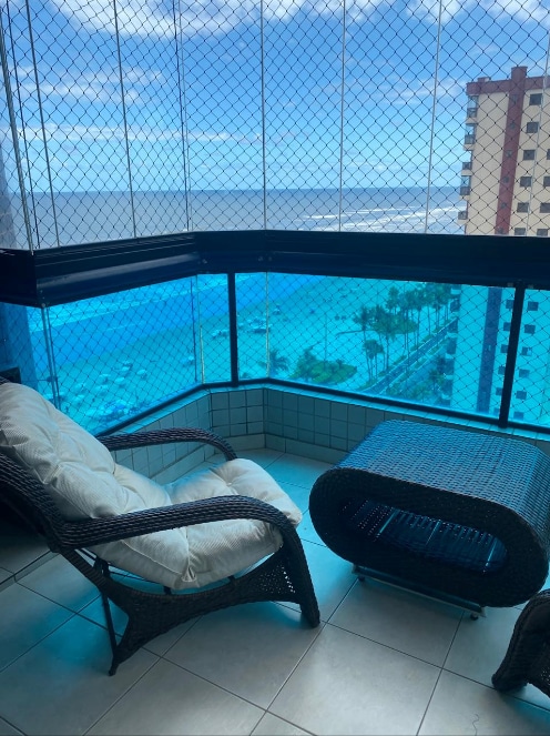 Apartament excelent pe malul mării, peste standard, în cel mai bun punct din Guilhermina. Foarte aerisit 4 dormitoare, 4 băi, 3 spații. Sacada gourmet, cu vedere frontală spre colțul fortului. Te simți ca și cum ești pe plajă fără să părăsești apartamentul. Este o magazie lângă mare, cu bere și grătar. Parchează în interiorul clădirii și scoate mașina doar pentru a pleca. La câteva minute de mers pe jos pe malul mării ai brutării, piețe și Guilhermina Feirinha.
