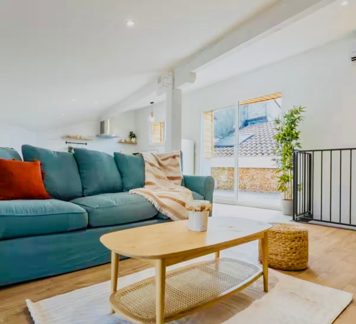 Bucură-te de o cazare plăcută în centrul orașului, renovată și cu o terasă în aer liber. Bucătărie complet utilată, aer condiționat reversibil, mașină de spălat...totul este furnizat pentru a te caza în cele mai bune condiții. În imediata vecinătate a piscinei și a căii de remorcare, te vei bucura de o oprire sportivă în apropiere. Check-in independent și parcare gratuită la proprietate. Ședere plăcută!