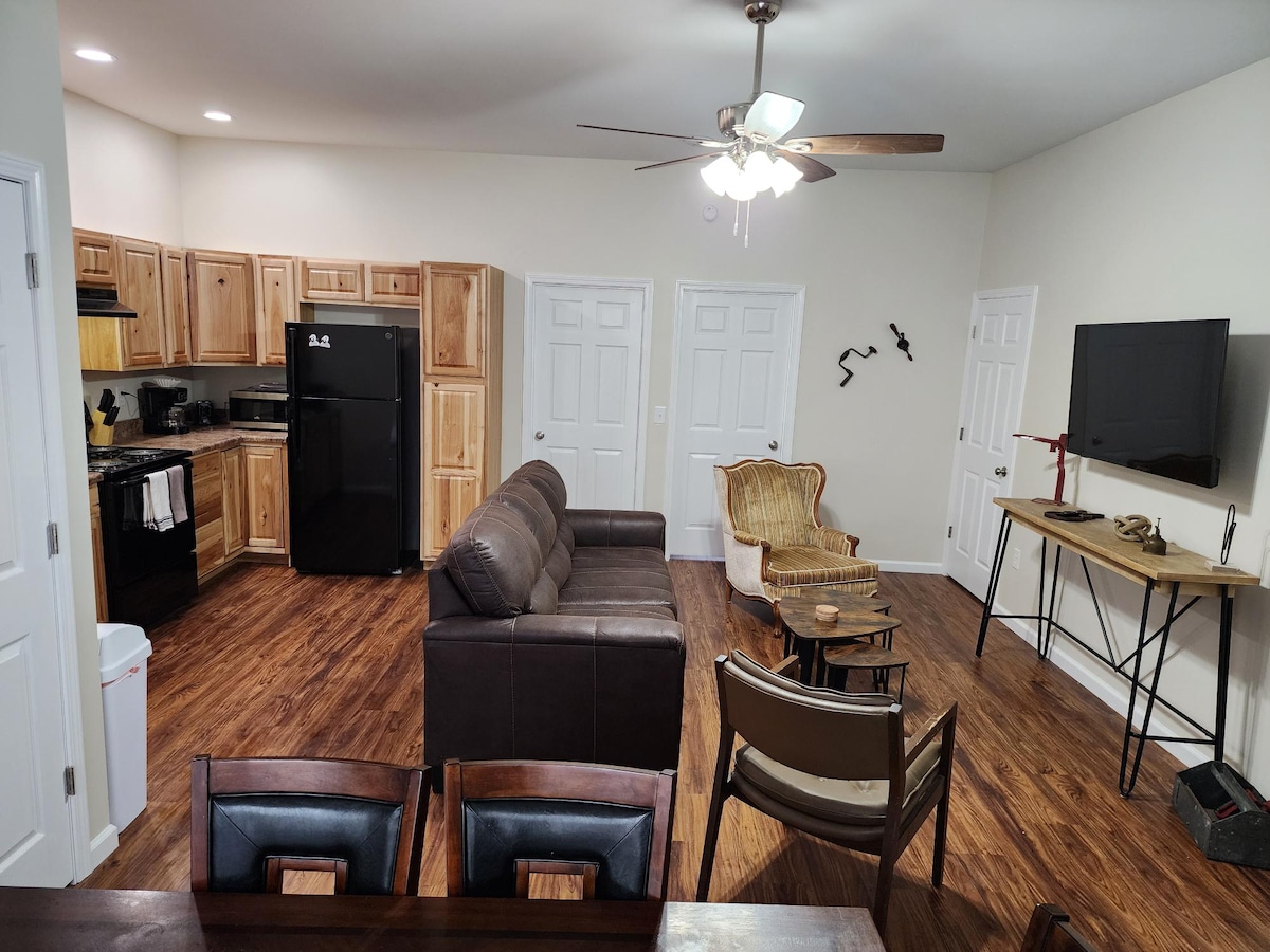 Cozy 1 Bedroom fully furnished apartment with own entrance that is in the basement of our beautiful Historic Home in Bluefield West Virginia. We live upstairs. Quiet, respectful guests only. Amenities include wifi, washer/dryer, fully stocked kitchen, snacks, drinks, coffee and tea provided Large dining area and spacious kitchen. Queen size pillow top bed with 1200 thread count sheets. Large L shaped sectional and big screen tv. With electric fireplace on those chilly nights.
