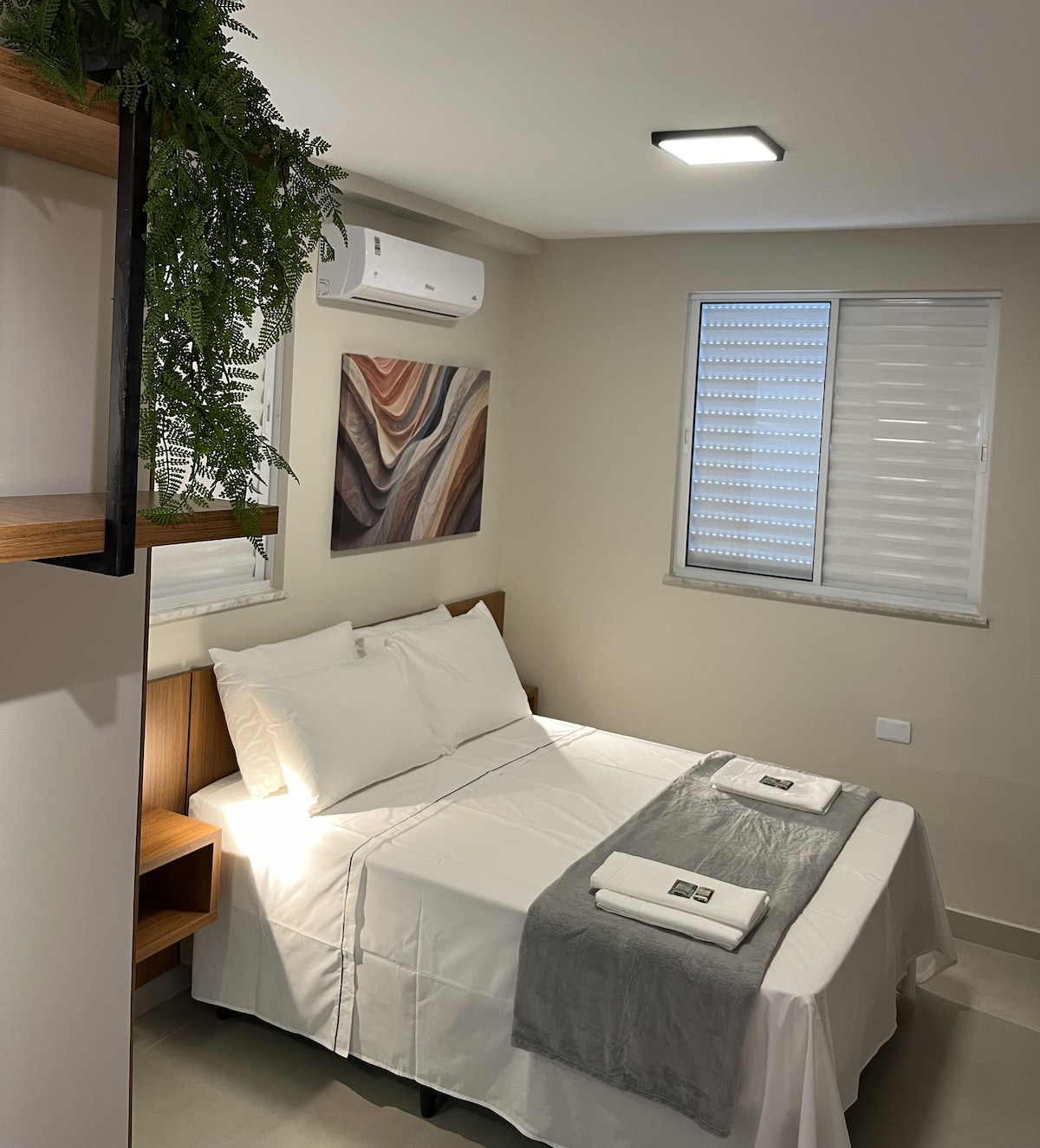 Categoria Flat Superior Plus - lux! Modern cu designer unic. Etaj înalt cu vedere panoramică la BH. Locație foarte privilegiată, acest lux din Alto da Afonso Pena,este un punct culminant în logistica călătoriilor în BH, ajungând cu ușurință la punctele turistice și de afaceri. Apartament cu aer condiționat, TV de 32", masă de lucru, minibar, uscător de păr și seif. Structura locului are un restaurant, spațiu de fitness, piscină, saună, lobby bar, Wi-Fi, room service non-stop și 8 spații pentru evenimente.