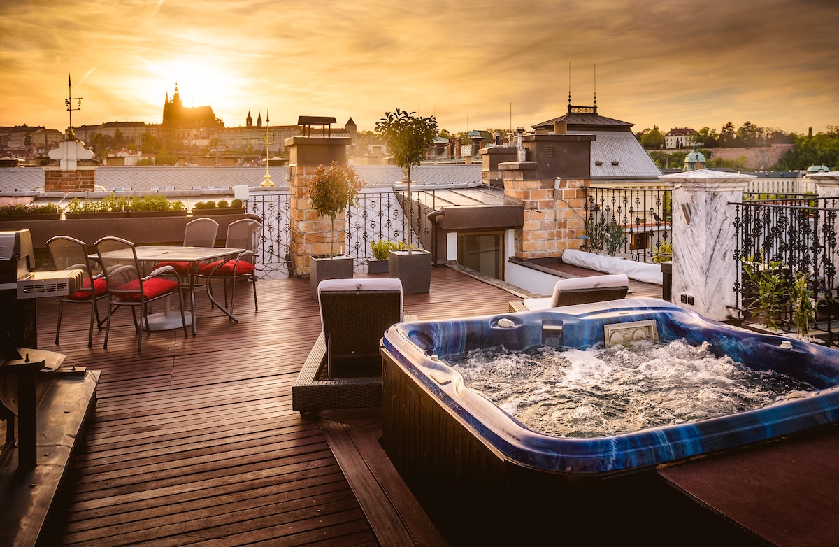 3FL Apt de REGI + cadă cu hidromasaj pe terasa din inima Pragăi