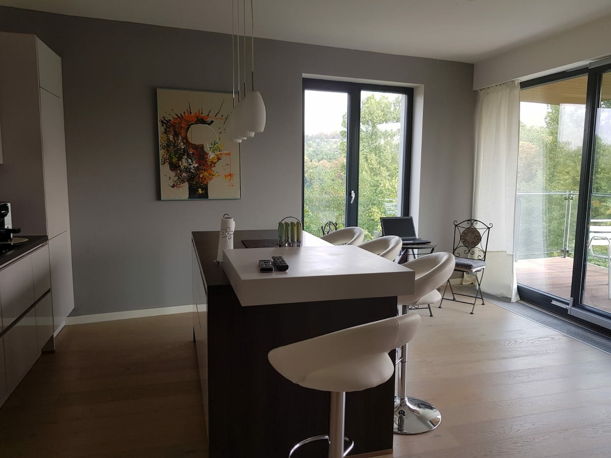 This spacious designer apartment with three bedrooms (143m) and two balconies offers stunning river views. The large living area is connected to a stylish, fully equipped kitchen. The apartment features three bedrooms with king-size beds and two modern bathrooms, one en-suite to the master bedroom. Both balconies are accessible from the living room and the master bedroom. Ideal for up to 6 guests, with the option to accommodate 2 additional guests on a sofa bed for an extra fee. No pets allowed.