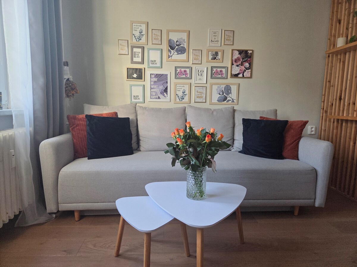 Bine ai venit în apartamentul nostru liniștit situat într-o locație perfectă, departe de mulțime, dar aproape de centrul orașului. Odihnește-te într-un pat confortabil, pe balcon sau în cada confortabilă;) Bucură-te de Wi-Fi de mare viteză Chromecast O bucătărie complet utilată cu mașină de spălat vase Mașină de spălat Depozitare bagaje Ne concentrăm pe interioare frumoase, confort confortabil și curățenie imaculată, toate pentru a vă oferi șederea perfectă!