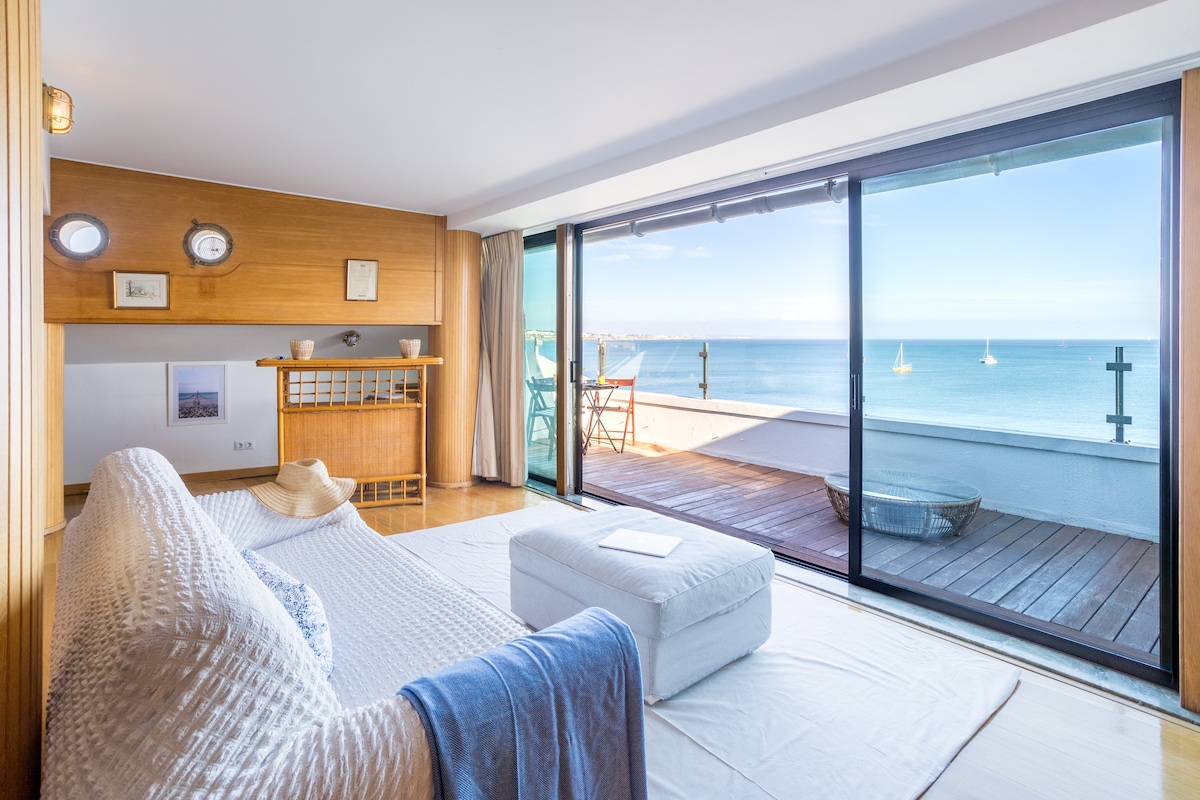 Welcome to our unique 1-bedroom nautical apartment. Mesmerizing panoramic views of the azure ocean she offers a truly unparalleled coastal living experience. Perfectly situated with Queen Beach (Praia da Rainha) right under the window, the city center outside the door, and the train line to Lisbon down the road, this apartment offers the perfect blend of comfort, and convenience for an unforgettable seaside getaway. We look forward to welcoming you to your own oasis. City tax 4€/night/person.