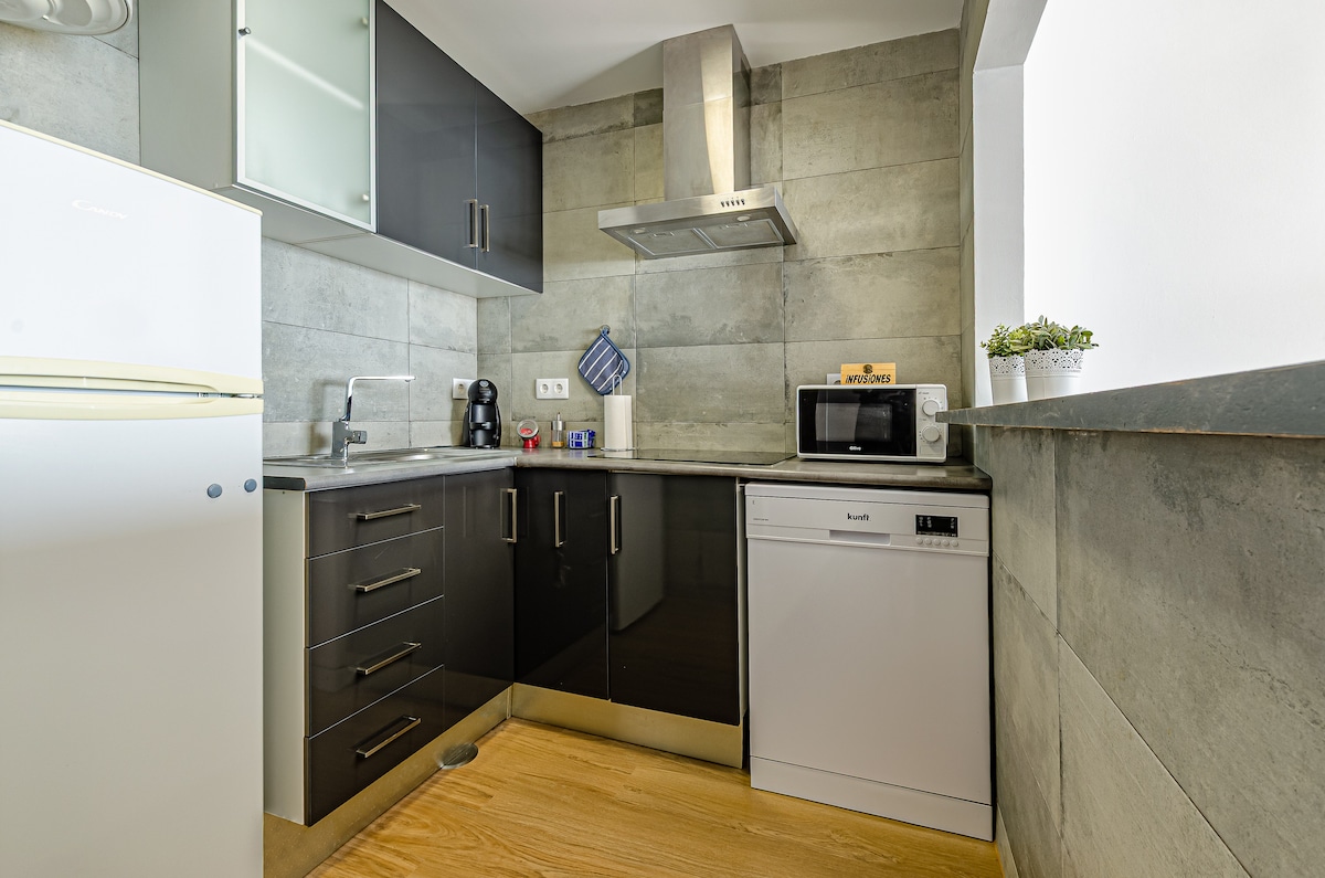 Cât se poate de central. Apartament la ultimul etaj cu o cameră cu chicinetă, baie, balcon foarte mare și vedere frumoasă. Situat pe frumoasa stradă Beco Dos Invalidos, la câțiva metri de piața principală a plajei Ribeira din Cascais. * Cu aer condiționat și încălzire. O taxă turistică de 4 euro de persoană pe noapte (până la primele 7 nopți) trebuie plătită la sosire.