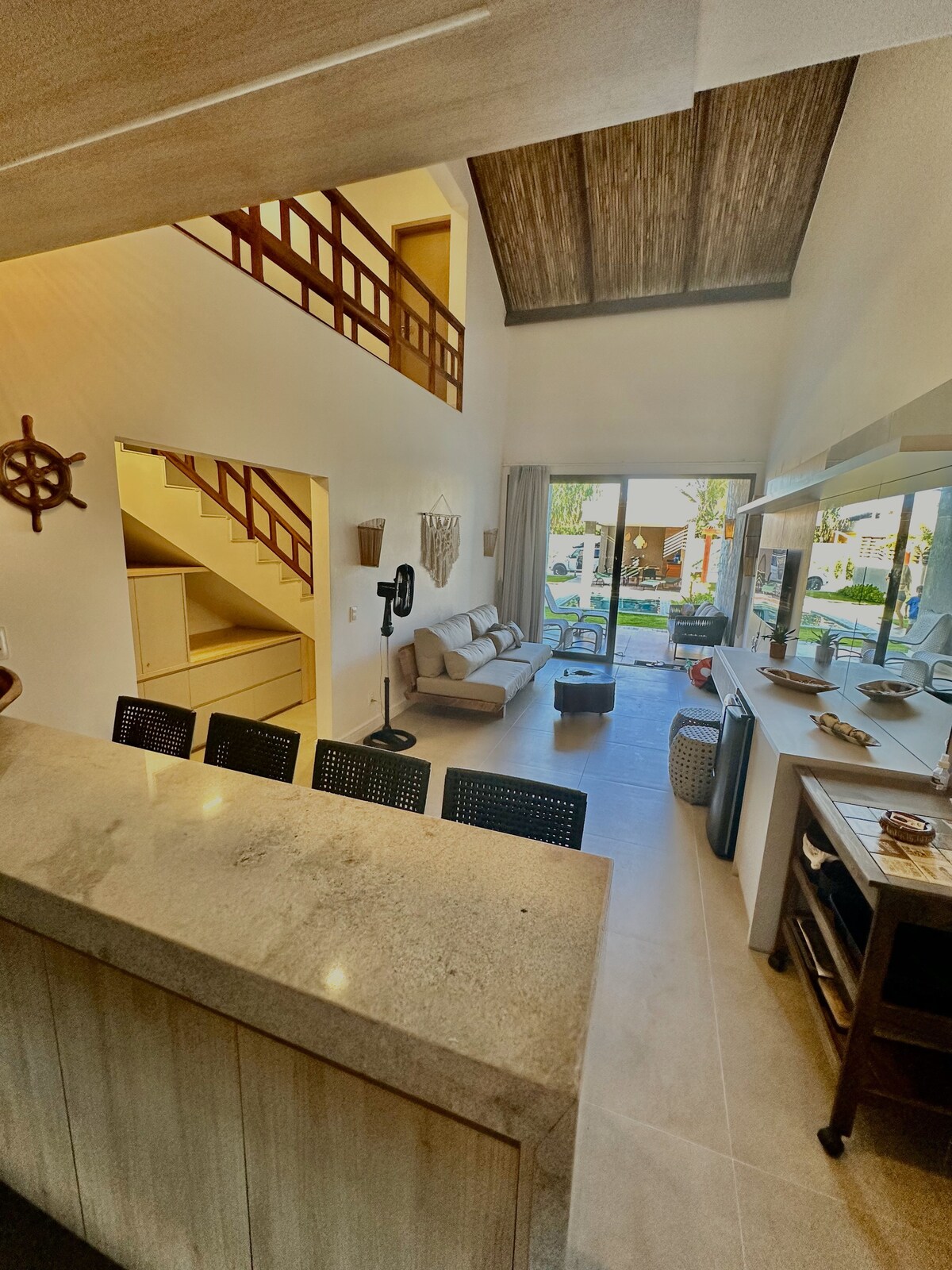 Casă exclusivistă pe plajă în Flecheiras, chiar lângă plaja Hotel Zorah. Are 4 apartamente cu aer condiționat și perdele opace, o piscină privată cu duș în aer liber, gazon cu șezlonguri Hio Decor și parcare acoperită. Bucătărie complet utilată, cu veselă, pahare și ustensile. Perfect pentru cei care caută confort, intimitate și contact direct cu natura. Oceanul este literalmente la ușa ta!