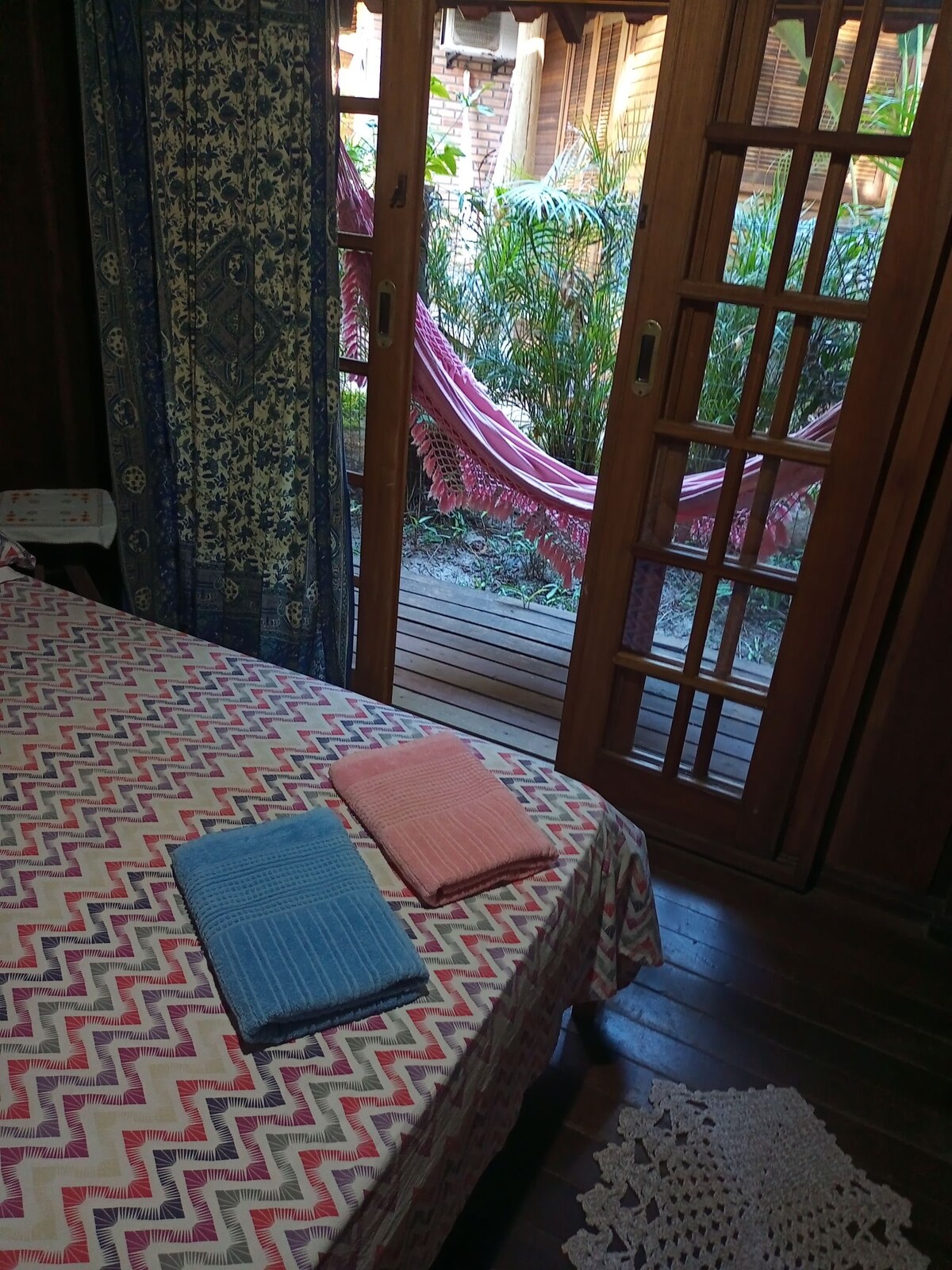 A hospedaria apresenta acomodações bem confortáveis, porém modestas. Temos 9 quartos variados e 2 espaços comuns, para confraternização com churrasqueiras e utensílios compartilhados. O café da manhã é pago a parte. O Quarto 05, apresenta uma cama de casal (2 pessoas). Ideal para um casal ou para quem viaja sozinho. É um local modesto, tranquilo, com amplas varandas. Os banheiros são compartilhados, portanto fazemos questão de deixá-los sempre muito bem limpos e organizados.