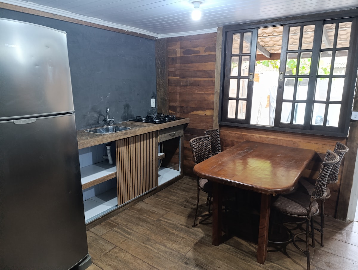 Avem o casă simplă și bine situată în Praia de Encantadas. Conține un dormitor cu televizor și aer condiționat + baie comună + spațiu pentru mese (chiuvetă, aragaz electric, frigider și articole de bucătărie). Terenul este privat, există 150 de metri de debarcaderul de îmbarcare/debarcare și de plaja principală; aproape de piețe, brutărie, restaurante și alte magazine. **Nu oferim alimente și obiecte personale, cum ar fi: prosoape de baie, săpunuri, pastă de dinți etc.