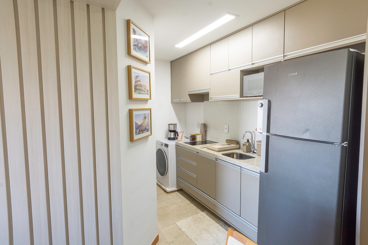 This studio offers all the comfort and convenience for your stay in Salvador. Just 300m from the beach, you'll enjoy a panoramic view of the city, in addition to a modern and fully equipped space, with a double bed, smart TV, air conditioning, and a complete kitchen. The building also offers common areas such as a rooftop pool, gym, and coworking space. Experience Salvador with all the comfort you deserve. Book now!