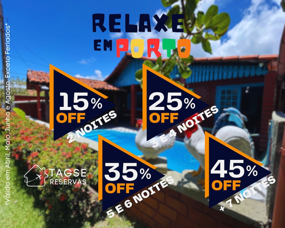 Centrul Porto de Galinhas, cea mai bună porțiune de plajă! La doar două minute de mers pe jos până la mare și la cinci minute de mers pe jos până la piscinele naturale. Parcare gratuită! Găzduim până la 13 persoane. Familiile cu copii și persoanele în vârstă iubesc, de asemenea, spațiul nostru, toate la parter! POT FI ADMISE ANIMALE DE COMPANIE, sub rezerva consultării prealabile. Spațiu pentru lucru la distanță! Wi-Fi! Spațiu unic în Porto de Galinhas! Natura te îmbrățișează, transmite pace, intimitate, aproape de mare, iar noi îți oferim tot confortul pentru a te simți ca acasă!