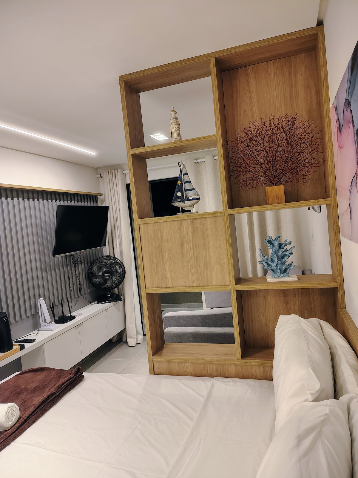 Studio la Marulhos Suites Resort. Pat matrimonial matrimonial, pat dublu, saltea suplimentară, aer condiționat, internet bun și televizor inteligent. Bucătăria are frigider, Gelágua, cafetieră, aparat de făcut sandvișuri și alte ustensile de bucătărie. Apartament confortabil cu vedere la piscine. Hotelul este de primă clasă, are mai multe piscine, saună, sală de gimnastică, terenuri de fotbal și tenis, zonă de joacă și recreere în fiecare zi pentru copii. Am deja câțiva ani închiriind acest apartament și alte apartamente pe un perete înalt, așa că ai încredere în mine!