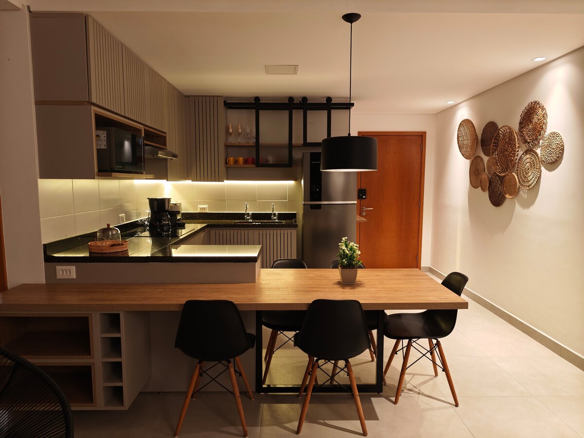 Studio 111 este modern, confortabil și complet pentru șederea ta în Ubatuba. Cu mobilier contemporan și decor de plajă, te vei simți aproape de mare. Apartamentul oferă concierge non-stop, iluminat natural și o zonă de agrement uimitoare: piscină infinită și vedere la mare, spa cu saună uscată și umedă, lounge și sală de fitness. O evadare perfectă pentru zile de odihnă în confort și stil.
