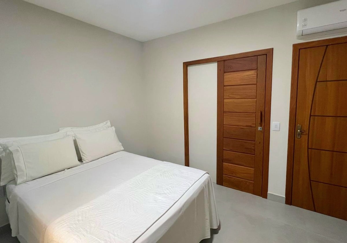 Căsuță confortabilă, complet nouă, fermecată și de dimensiunea potrivită. Pereți compuși din picturi artistice locale, care să te facă să respiri cu adevărat această regiune din Bahia. În plus față de decorat de arhitecți incredibili de aici. 2 etaje, sub living și bucătărie, deasupra celor 2 apartamente. Piscină colectivă chiar în fața ta și plaja Parracho chiar acolo, la doar câțiva pași. La întoarcere, natura vie. Se află într-o zonă pe jumătate retrasă,dar aproape de Rua Mucugê. Un dans perfect între agitație și intimitate =)