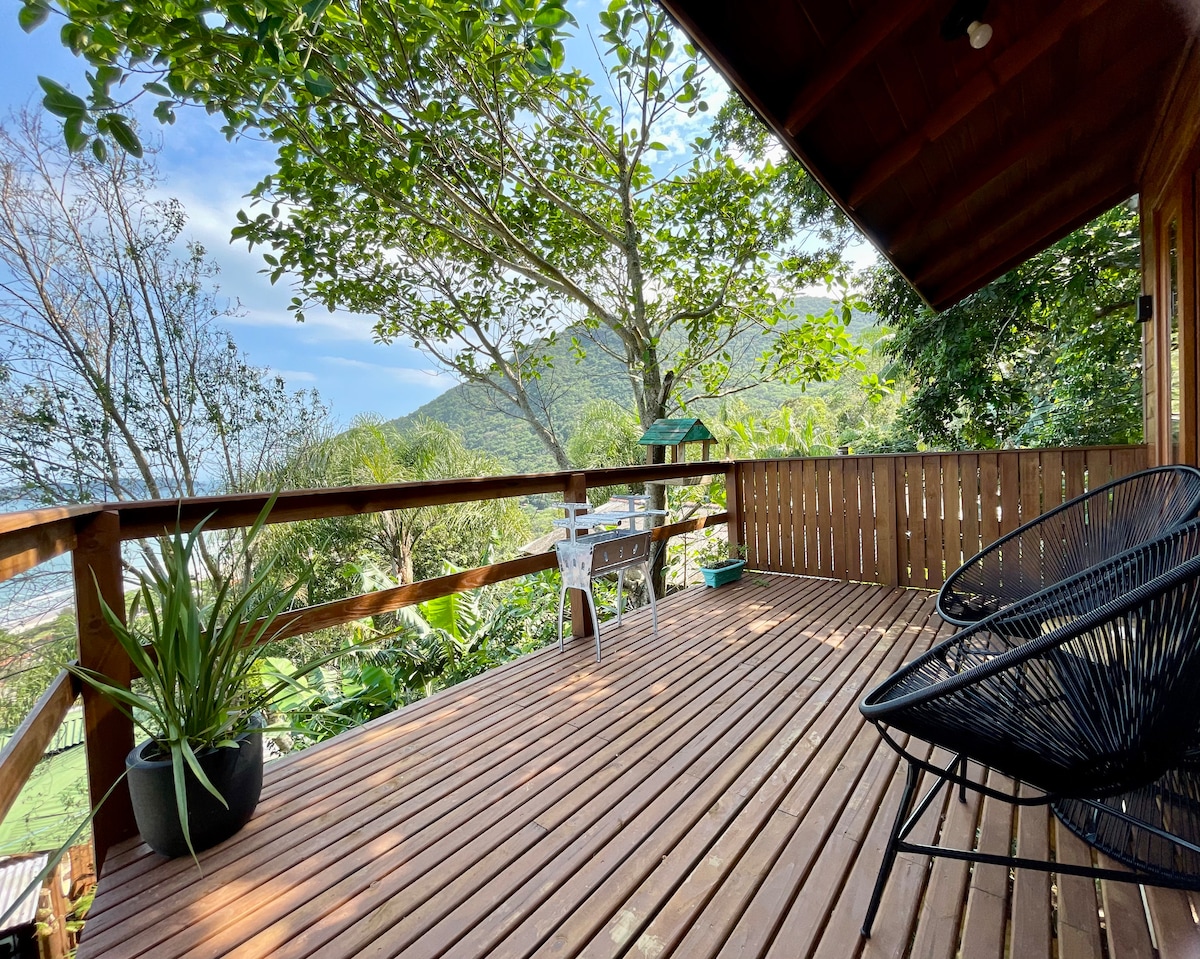 Chalezinho exclusivo para duas pessoas em Florianópolis. Tudo novinho. Lavadora de roupa. Cama de queen Churrasqueira exclusiva. Vista de frente para o mar e para montanha. TV nanocell 50 polegadas com Netflix. Internet por fibra ótica 400 megas. Dois ar condicionado quente e frio. Escrivaninha para notebook. Mini cozinha completa. Estacionamento seguro. Pertinho da rota gastronômica. Fornecemos roupa de cama e banho. Sem taxa pet. cercadinho para pet.