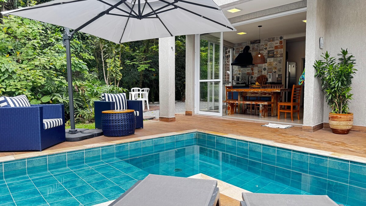 Casa este situată la aproximativ 50 m de plajă. Spațioasă, aerisită, are o piscină frumoasă cu aer condiționat, balcon gourmet cu grătar și bucătărie integrată. Are 2 frigidere, aparat de preparat bere, mașină de spălat vase, mașină de spălat rufe, 2 băi, 3 apartamente cu balcoane, 2 cu 4 paturi de o persoană și un apartament principal cu pat matrimonial „Queen” și dulap. Casa are Wi-Fi și Smart TV. Loteamento seguro cu portar, loc de joacă, magazin și cu o plajă curată și practic privată. Este la aproximativ 10 km de Shopping Riviera.