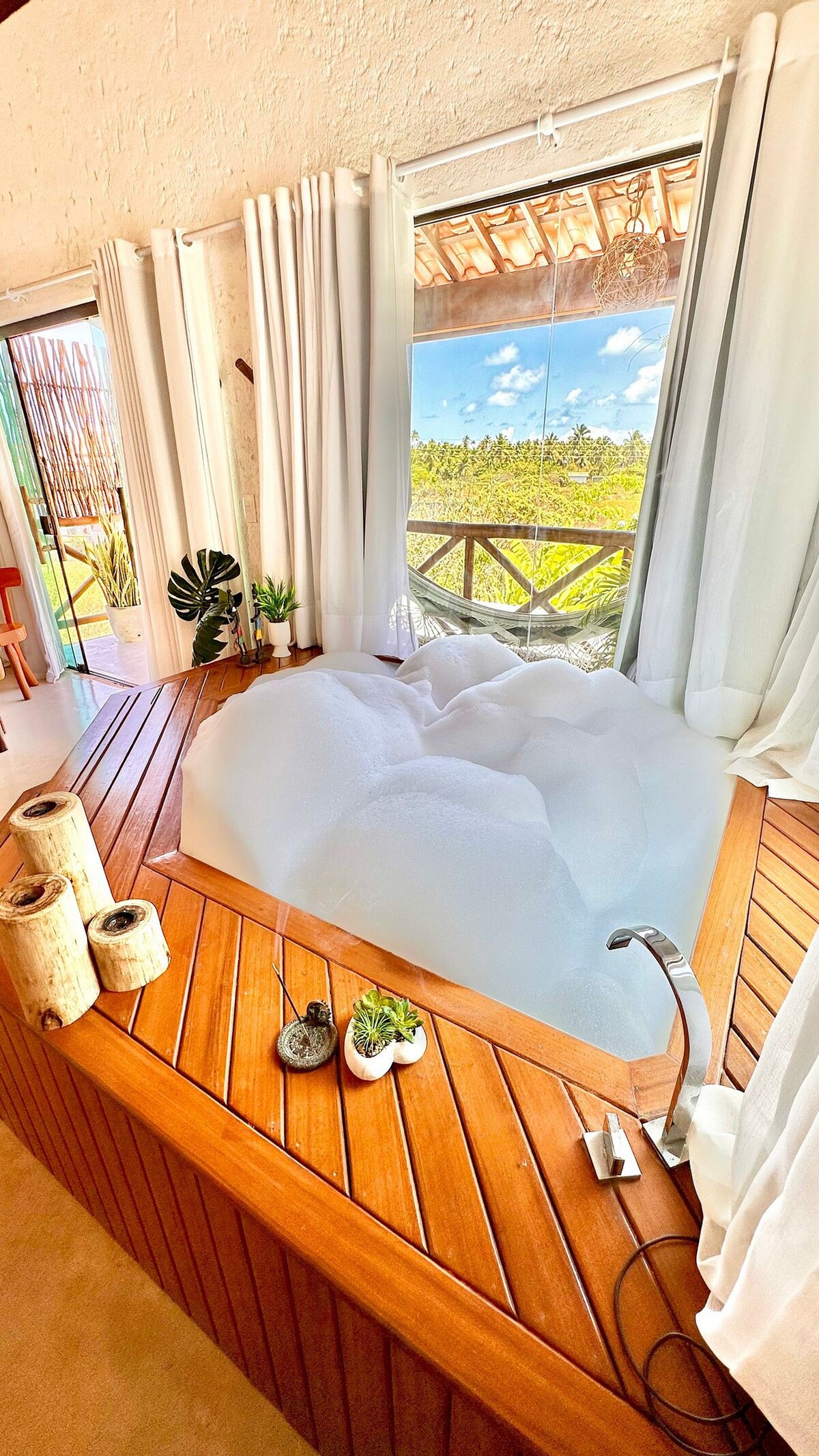 Casa Manguê Tatuamunha este situată în condominiul Be Tatuamunha de pe litoral, cu un rafinament foarte confortabil și un decor unic pentru zilele tale în paradis. Avem 3 apartamente și 1 dormitor mic, care găzduiesc până la 8 oaspeți. Avem un angajat care te ajută cu șederea, care organizează micul dejun și curățenia zilnică. Dacă dorești un serviciu de gătit, îți putem recomanda unul de încredere! Avem un serviciu de concierge pentru a te ajuta cu achizițiile în timpul șederii și pentru a-ți facilita sosirea! Așadar, bine ați venit cu toții.