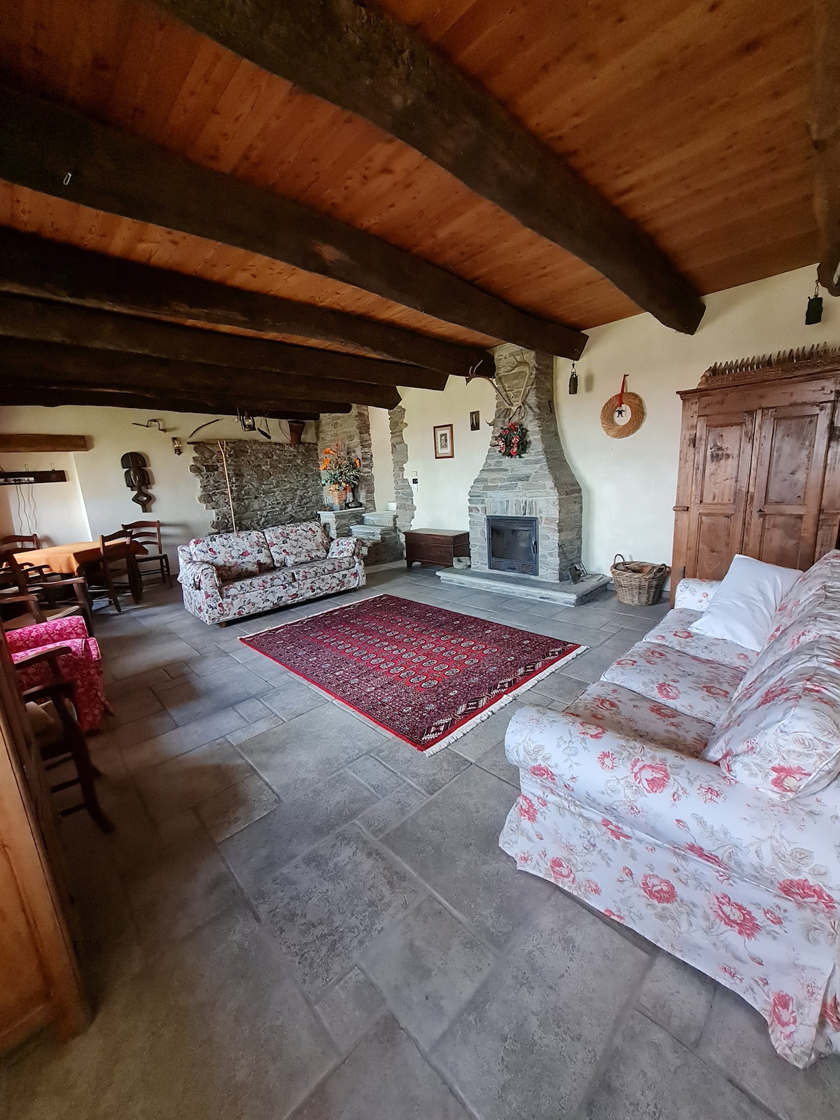 Bine ai venit în Ostana, unul dintre cele mai frumoase sate din Italia, situat în Val Po, în fața Monviso (3841 de metri), cel mai înalt munte din Alpii Cozie. Cabana se află la 1400 de metri distanță în satul caracteristic Sant 'Antonio di Ostana, departe de circuitele turistice de masă. Cabana are o expunere frumoasă spre sud-vest, iar de pe terasa mare te poți bucura de priveliști spectaculoase cu Monviso și munții din jur. În lunile de iarnă, dacă dorești, vei fi înfășurat în căldura șemineului cu lemne.