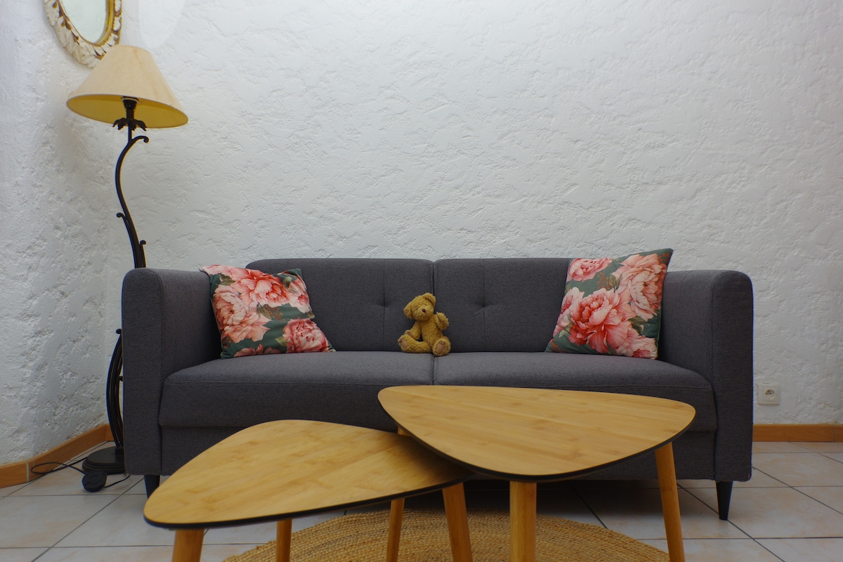 Bucură-te de confortul oferit de acest loc liniștit și rafinat. Apartamentul este situat la cinci minute de mers pe jos de Porte de France. Pe o rază de 300 m vei găsi pe o rază de 300 m de restaurante, baruri și magazine și stație de autobuz pentru termeni și alte destinații. Supra-echipat, de la bucătărie la living, bucură-te de ședere, între termeni, istorie, arhitectură și munte. Vei ajunge, patul este făcut și cearșafurile și prosoapele furnizate.