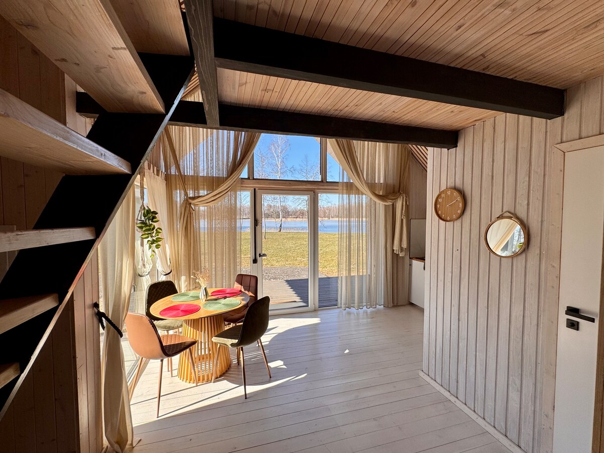 Sunset Village Ezera House este o cabană confortabilă pe malul lacului, cu priveliști uimitoare și o atmosferă liniștită. Are o terasă privată, saună electrică și o bucătărie complet utilată. Dormitorul de la etaj are un pat matrimonial, iar canapeaua se transformă într-un pat suplimentar. Oaspeții se pot bucura de o groapă de incendiu pe malul lacului, un grătar în aer liber și utilizarea gratuită a bărcilor și a unui catamaran. Perfect pentru o escapadă relaxantă înconjurată de natură.