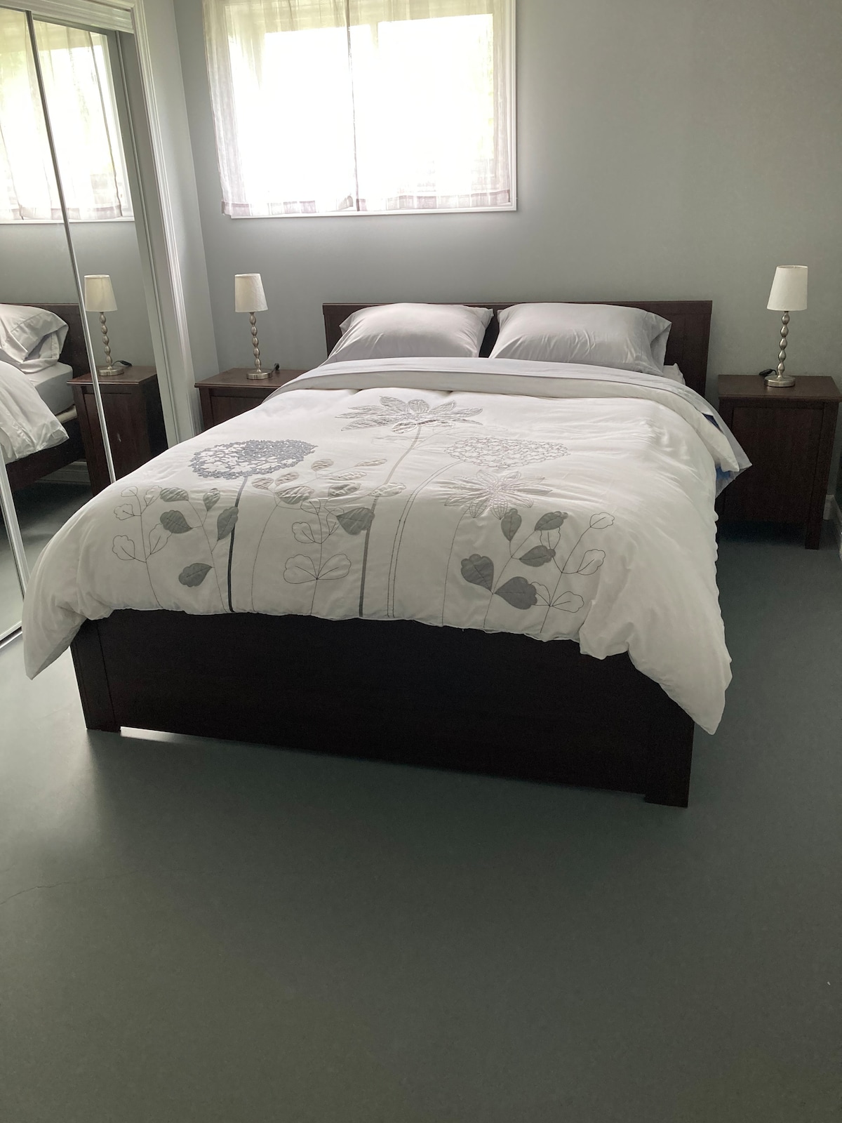 Comfortable bedroom in basement private bath