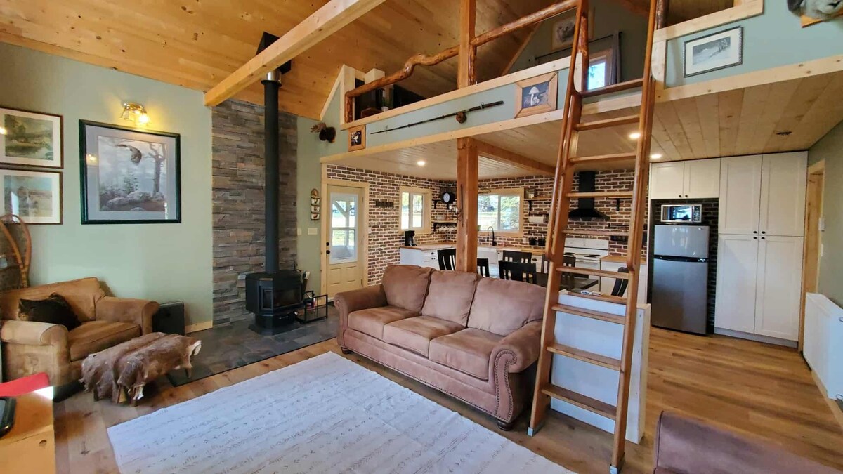 La doar 8 km de autostradă, pe drumuri bune, se pare că ești la un milion de mile distanță. Locul nostru este o fermă liniștită, de 200 de acri, într-un paradis natural. Oraș mic în apropiere pentru elementele de bază. 45min până la 2 orașe mai mari, cu toate dotările. Complet privat, pe malul apei, cu animale foarte prietenoase. Cu doar 2 cabane, la 80 m distanță, bucurați-vă de propria lume mică. Sau vacanță cu prietenii, găzduiește o nuntă sau o reuniune de familie! Dacă închiriezi ambele cabane, permitem rulote/corturi cu petrecerea ta contra unei taxe mici.