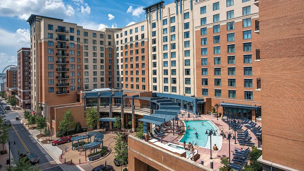 Acest complex te plasează chiar în centrul cartierului înfloritor de pe malul apei din Maryland. Bucură-te de opțiunile de cumpărături și de luat masa din National Harbor, precum și de atracții populare, cum ar fi Capital Wheel și croazierele turistice. Washington D.C. este în apropiere, așa că poți face o excursie de o zi în capitala națiunii și poți vizita repere emblematice. Recuperează-te după aventurile tale cu facilitățile complexului, inclusiv o piscină interioară și exterioară, o cameră LEGO, o sală de jocuri video, o sală de biliard și multe altele.