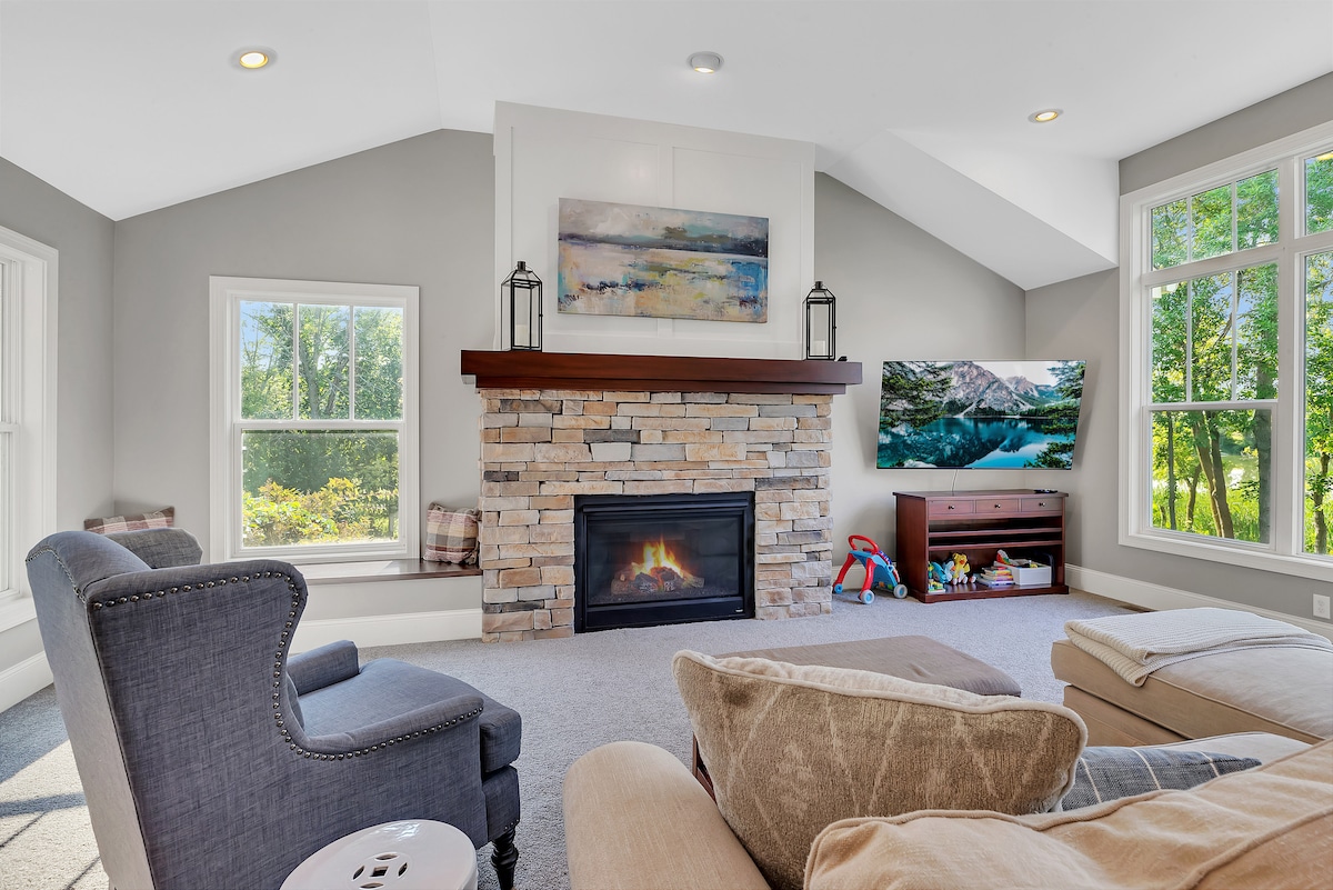 O cabană confortabilă, privată, situată în vârful dealului, cu vedere la frumoasa vale a râului Minnesota. Începe-ți seara cu grătarul aprins și o bere rece în mână. Bucură-te de sunetul liniștit al naturii în timp ce stai pe terasa cu căldura focului de tabără, mirosul dulce de s'mores și un cer plin de stele strălucitoare. Sau profită de ocazie pentru a sta în interior în garajul încălzit/cu aer condiționat și a începe propriul turneu de biliard. *Aceasta se află pe ferma noastră activă de bovine, aleea este împărțită de noi.