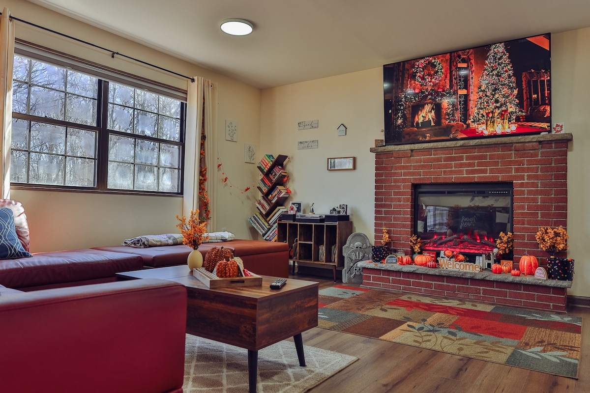 Cauți o escapadă la munte? Vino să evadezi la cabana noastră din Poconos, care îmbină perfect confortul modern și farmecul rustic într-un cadru privat, împădurit. Explorează traseele de drumeții din apropiere, răsfață-te cu restaurante locale, schi, pește, barcă sau pur și simplu îmbrățișează liniștea naturii în timp ce stai lângă foc! De asemenea, te vei bucura de Wi-Fi rapid, aer condiționat și un șemineu interior cu gel combustibil.