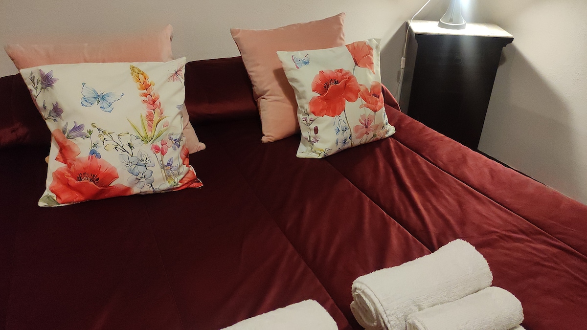Appartamento con 2 camere da letto e salotto nel B&B JACARANDA. Situato nel cuore di Loiri, a pochi km da Olbia e dalle spiagge, consente di avere tutta la tranquillita' e la comodita' di cui si ha bisogno. Il paese ha accesso a tutti I bisogni di prima neccessita' come supermarket, farmacia, uffici postali, e svago come libreria, chiesa, bar, ristorante, pizzeria campo da calcio e tennis, parco giochi. Non è previsto l'uso cucina.