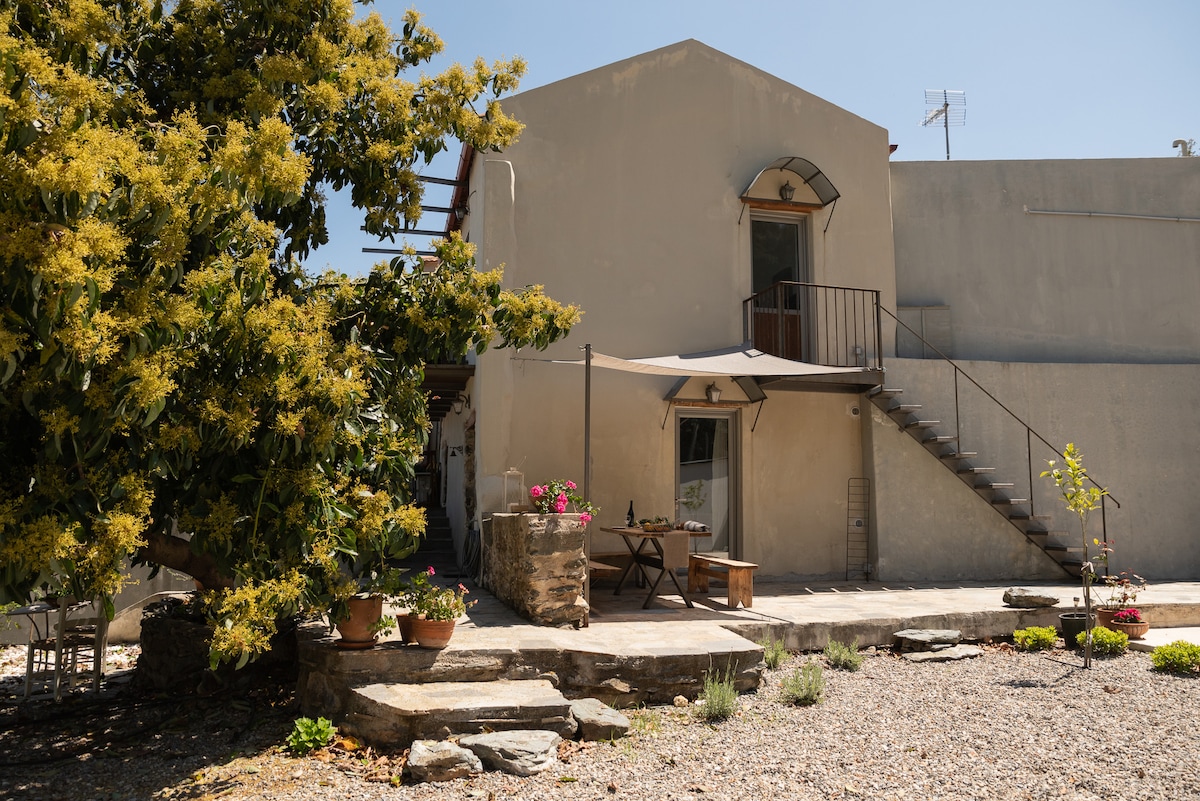O casă liniștită de 60 mp în satul Lakka, la o altitudine de 500 de metri, cu o atmosferă tradițională, cu vedere neobstrucționată la Munții Albi din Creta, cu două dormitoare, o baie și un living cu o bucătărie, care poate găzdui 4 persoane și animalul lor de companie. Răsăritul lovește curtea și ferestrele casei dimineața și o scaldă cu lumină. 20 de minute de Cheile Samariei, 30 de minute de Chania și 60 de minute până la Sougia în Marea Libiei și 10 minute de cel mai apropiat supermarket.