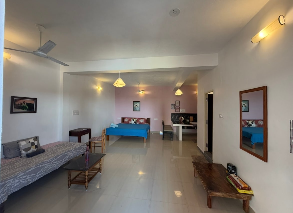 Acest apartament cu 1 dormitor de la GF, cu hol, bucătărie funcțională și baie atașată, este un spațiu complet privat, fără a împărți nicio zonă. Se află la câțiva pași de plaja Promenade, Rock Beach, Ashram, White Town, piață și cafenele bune. Locul este aproape de Orașul Alb și încă aproape de natură și de împrejurimi foarte liniștite. Toate ferestrele sunt orientate spre un teren verde imens. Are bucătărie complet funcțională cu ustensile, Freeze, AC, gheizer, TV, Wi-Fi de mare viteză. Avem nevoie de dovezi de identitate ale tuturor oaspeților.