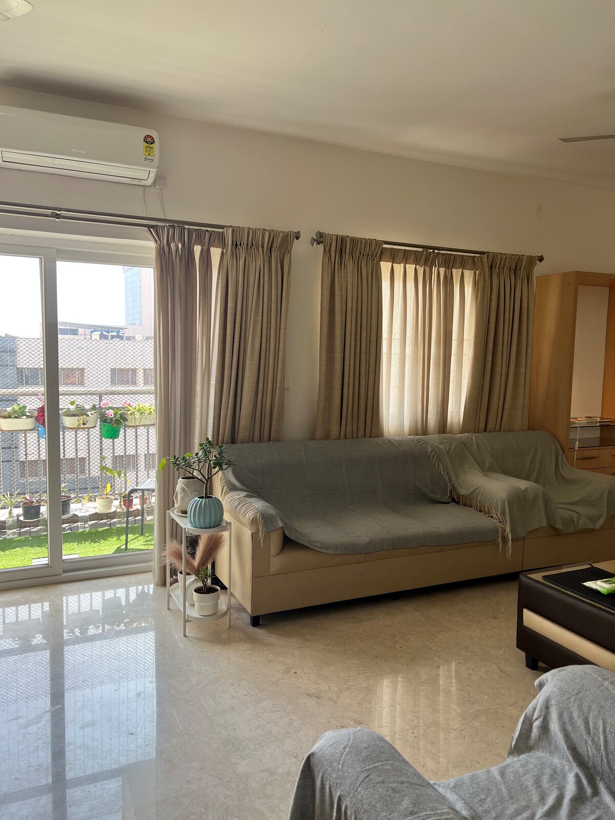 Experimentează liniștea în această vilă spațioasă 3BHK de la Shubh Enclave, concepută pentru familii, fondatori și creativi. Amplasat lângă verdeață luxuriantă și un lac liniștit, lumina soarelui și aerul curat creează un sanctuar pentru spațiu, liniște și liniște ✔ 3 dormitoare king-size cu toalete private atașate Living ✔ spațios cu Smart TV de 55" ✔ 2 balcoane aerisite ✔ Bucătărie complet utilată: cuptor cu microunde, aragaz, frigider, ustensile pentru mixer, mașină de spălat ✔ Curățenie zilnică disponibilă, gătește la cerere