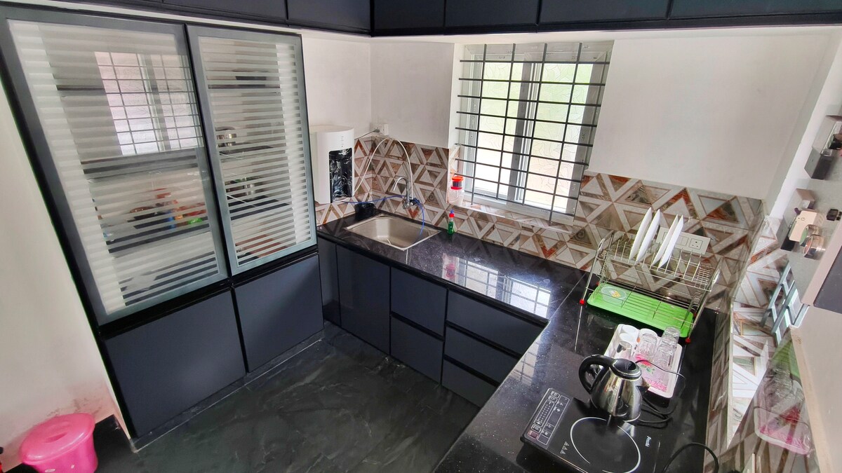 Welcome to a brand-new, thoughtfully designed studio apartment located at the heart of Palakkad town. This calm and comfortable space blends natural light, warm interiors, and a peaceful vibe, making it perfect for stays. It has all amenities like AC, TV, Kitchen with utensils and Washing Machine. The bedroom features a versatile queen-size bed that can be arranged as a single large bed or separated into two individual single beds, depending on your preference.