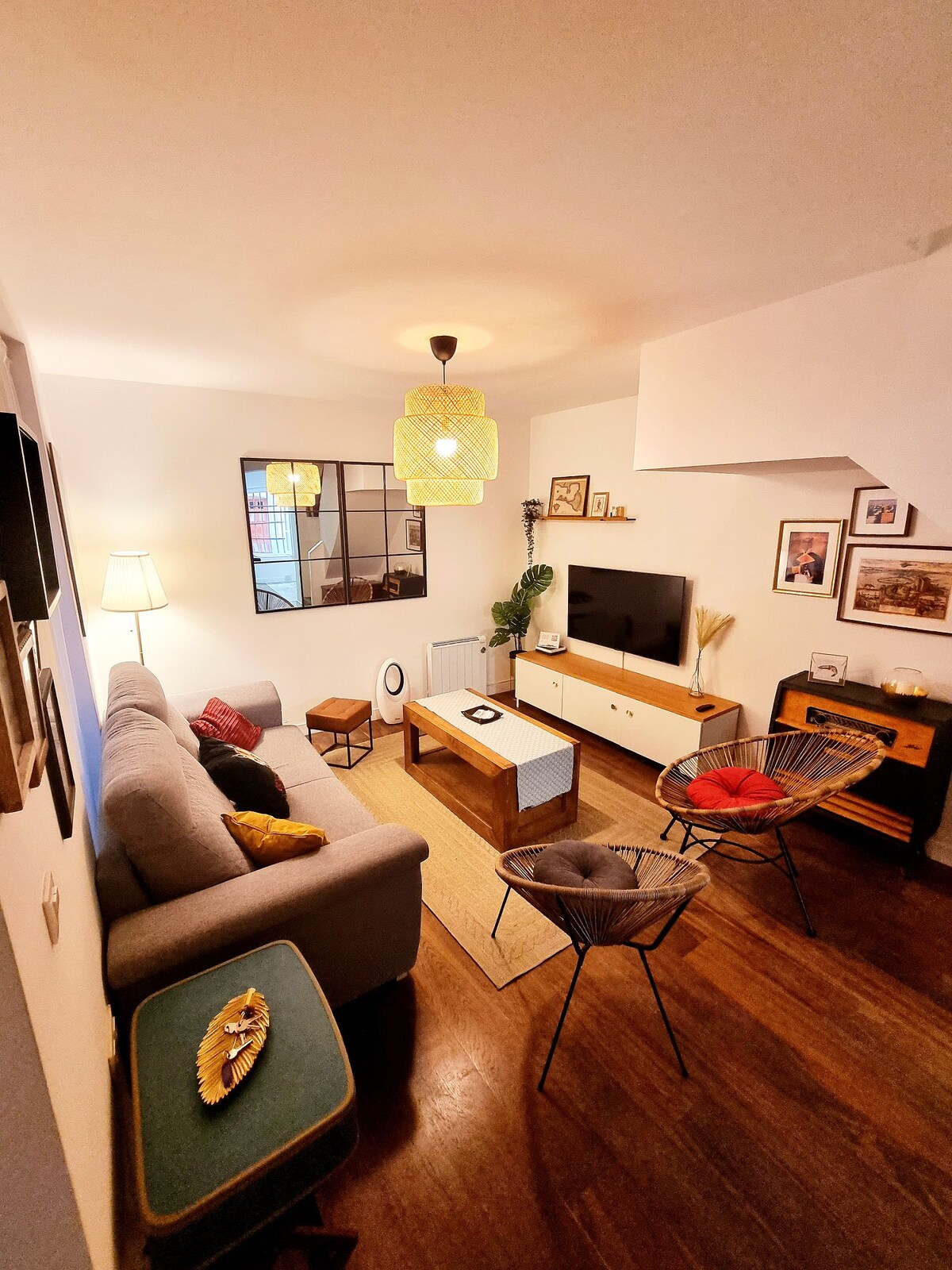 Coqueto duplex în inima orașului Cádiz într-o clădire cu lift. La etaj: sufragerie și bucătărie. În partea de jos: baie, dormitor și o terasă cu dulapuri. Luminos și liniștit. Complet echipat pentru o ședere perfectă. Ustensile de bucătărie, cuptor cu microunde, aparat de cafea Nespresso, fierbător, TV și smart TV, aer condiționat la ambele etaje și încălzire, Wi-Fi cu fibră, uscător de păr, șampon, gel etc. Salteaua de calitate (150 cm) Aspol pentru o odihnă perfectă.