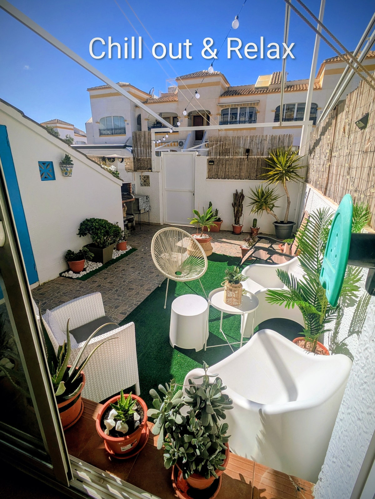 Bienvenido a nuestra acogedora casa familiar en Gran Alacant, perfecta para grupos y familias de hasta 6 personas. Situada a solo 10 minutos del aeropuerto de Alicante, la propiedad dispone de 2 dormitorios con camas dobles, una litera y una cama individual, 2 baños, una cuna disponible bajo petición y una amplia zona exterior con cenador y una barbacoa Weber de gas. Justo al lado encontrará una gran piscina, a la que se accede directamente desde la casa.