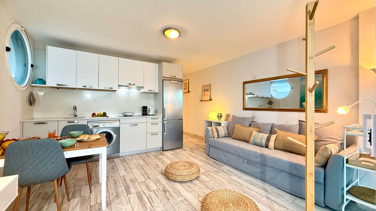 Apartament uimitor și confortabil, situat pe malul mării, tot ce îți trebuie pentru o ședere plăcută în La Isla Bonita. Bucurați-vă de vederi minunate la mare de pe terasă, dormitor și camera de zi. Situat la 15 metri de plajă, 150 de portul de agrement, această locație are toate serviciile la câțiva metri distanță, farmacie, supermarket, restaurante...