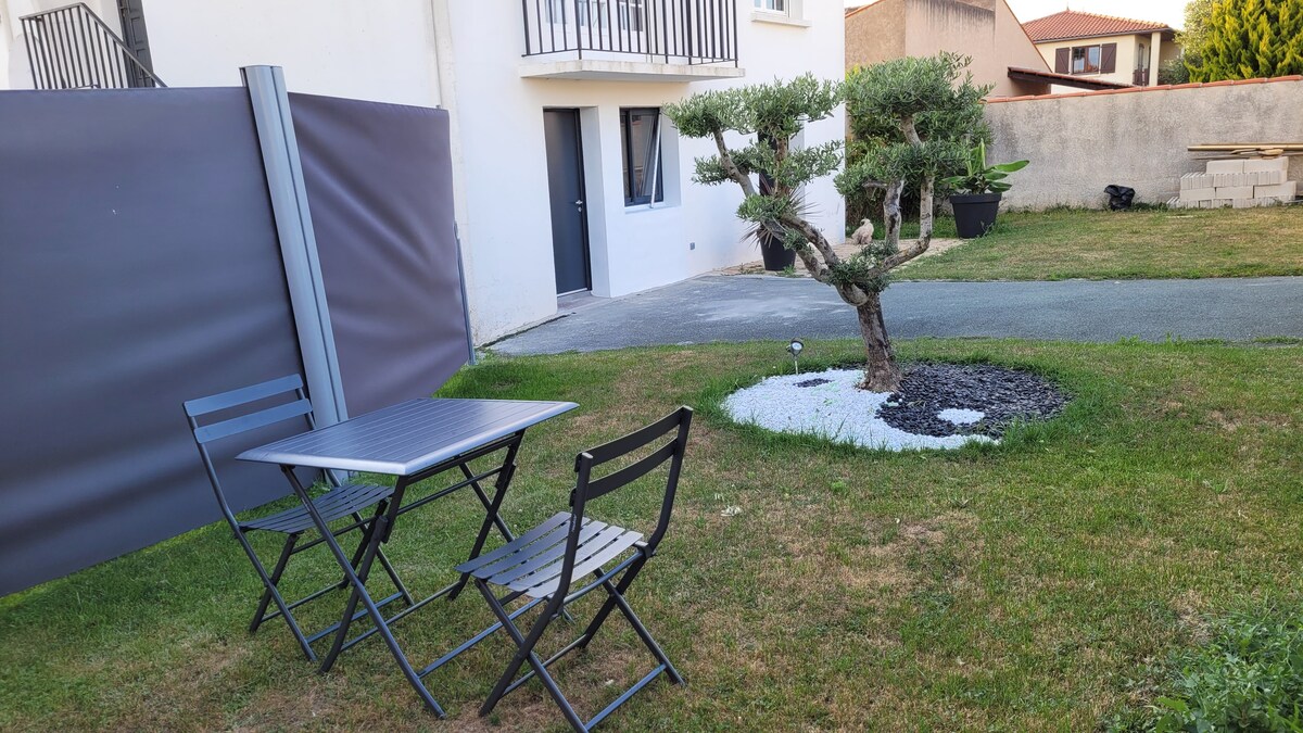 Studioul nostru cu bucătărie echipată, un dormitor ( un pat dublu și o canapea extensibilă) și baie complet independente de casa noastră este la 5 minute de centrul orașului La Rochelle. Este perfect pentru cupluri sau cupluri cu copii, persoane care călătoresc singure, persoane care călătoresc în interes de afaceri și vă veți bucura de liniște. Vă puteți bucura și de o mică grădină dacă doriți.