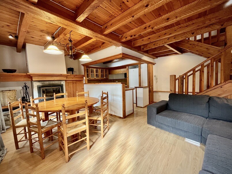Apartament duplex (dreapta) WIFI gratuit. Două dormitoare (5 persoane max.), baie completă, living cu chicinetă complet echipată. Lenjerie de pat, nordici și prosoape incluse. PRIVELIȘTI SPECTACULOASE. Toate apartamentele în care este împărțită casa au acces gratuit la terasa privată a cazării. Parcați în fața casei. 3 km de Vielha și 15 km de Baqueira. Avem două apartamente foarte similare (Dreta i Esquerra), între cele două avem o capacitate de 10 persoane.