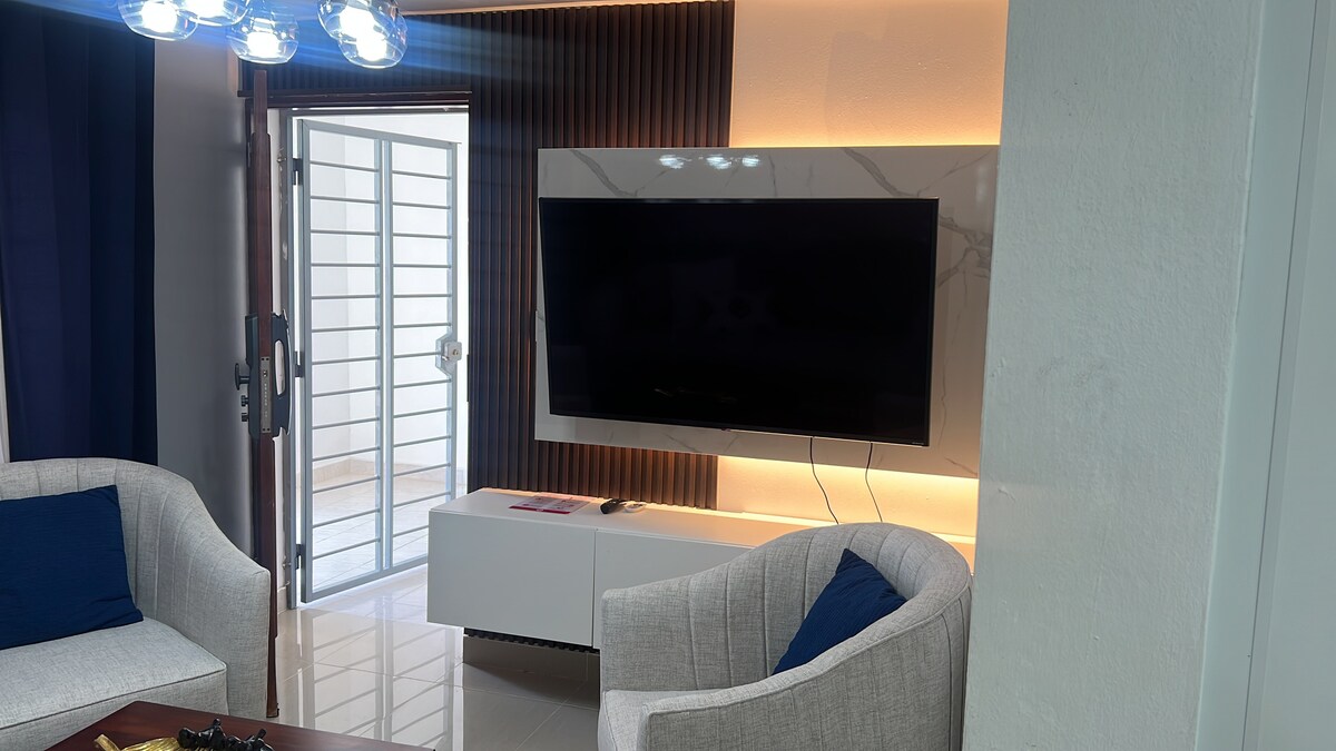 Un nou apartament cu 3 dormitoare, 2,5 băi, complet mobilat cu aparate din oțel inoxidabil, blaturi din granit, aer condiționat și ventilatoare de tavan în fiecare cameră. Este perfect pentru a te relaxa cu familia în acest loc liniștit, care include, de asemenea, o piscină privată pentru adulți și o piscină pentru copii cu duș și baie. Acesta are, de asemenea, două locuri de parcare gratuite, lift, 2 locuri de joacă, gateman non-stop și Wi-Fi gratuit. La 15 minute de aeroportul Santiago și de El Area Monumental, traversând strada de la parcul acvatic Mundo Acuatico.
