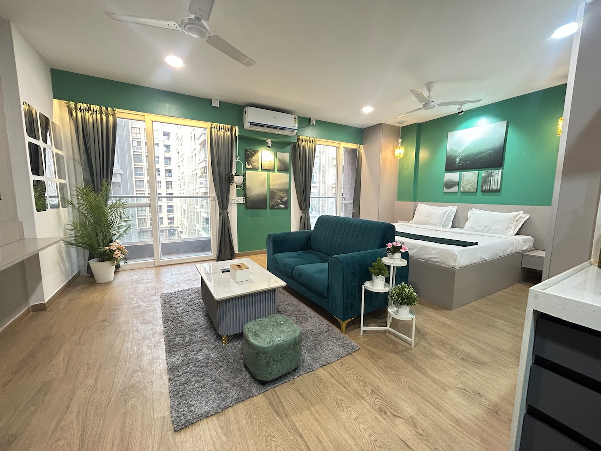 Bine ai venit în Kuteeram - casa ta departe de casă! Acest apartament elegant cu 1 dormitor este situat perfect, cu priveliști uluitoare ale orizontului și confort modern. Indiferent dacă ești aici în interes de afaceri sau de plăcere, apartamentul nostru oferă un amestec perfect de liniște și confort. Te vei afla la câțiva pași de mall-urile care oferă opțiuni de divertisment, mâncare și cumpărături. Apartamentul nostru este conceput ținând cont de confortul tău, oferind o ședere liniștită. Rezervă acum și bucură-te de tot ce este mai bun în oraș !