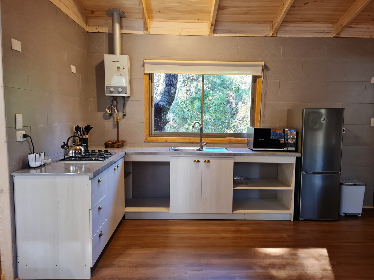 Numai cabană cufundată în jumătate de hectar (5.000m2) de pădure nativă privată, cu minisenderos, PISCINĂ (vară) și jocuri EXCLUSIV pentru oaspeți. WI-FI Fiber/ 2 televizoare INTELIGENTE (HD c Pack DISNEY+/ESPN ETC.)/DirectTV/Apă potabilă/Gaz/Lemn de foc/Prosoape/Cearșafuri/Mașină de spălat Capacitate p/ 4 persoane. 1D. dublu și 1D. cu 2 paturi de 1 loc.; sufragerie-bucătărie (complet echipată), aragaz cu lemne, 1 baie, grătar cu grătar. Aproape de centrul orașului Los Lleuques și la 25 km de Nevados de Chillán