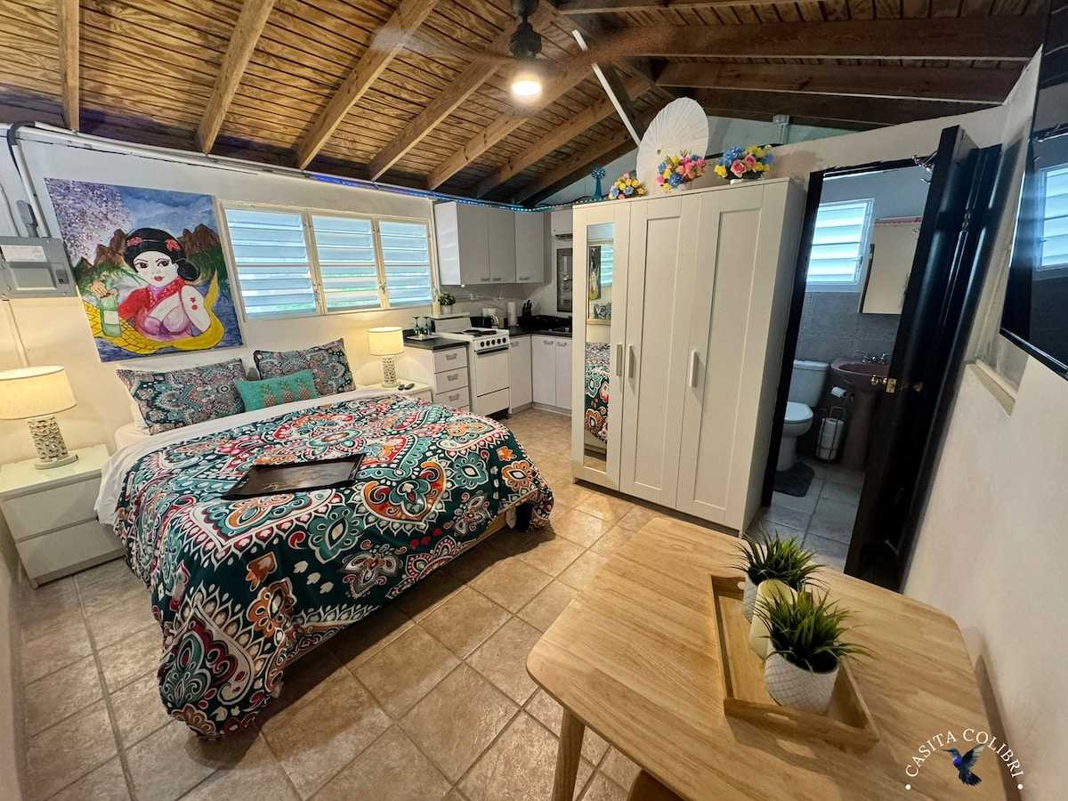 Bine ai venit la Casita Colibrí, refugiul tău confortabil, prietenos cu bugetul, în inima orașului Culebra! Situată perfect, această casită fermecătoare se află la câțiva pași de tot ce ai nevoie: magazine alimentare, aeroport, închirieri auto și orașul plin de viață Culebra. Indiferent dacă ești aici să te relaxezi sau să explorezi, vei fi aproape de cele mai bune atracții ale insulei, inclusiv faimoasa plajă Flamenco, la doar câteva minute distanță!