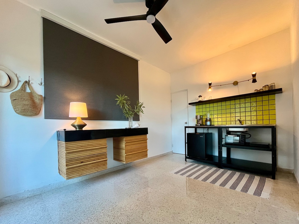 O ședere plină de stil, confort și ospitalitate de neegalat, la 4 minute de mers pe jos de plajă - Alimentare de rezervă cu energie electrică și apă (cu excepția aparatelor de aer condiționat) - Comunitate închisă în condiții de siguranță cu parcare gratuită pe stradă - Terasă comună răcoroasă, unde se prepară zilnic cafea gratuită - Ventilatoare de aer condiționat și de tavan în fiecare cameră - Saltea cu spumă cu memorie mov - Mașină de spălat și uscător automat de rufe comune - Bucătărie complet utilată. - Wi-Fi cu fibră optică de mare viteză - Echipa de găzduire profesionistă - Transport al bagajelor - O scurtă plimbare până la Cll Loiza: restaurante, baruri și magazine