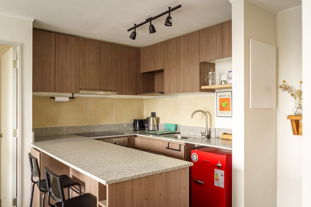Disfruta de una estadía cómoda en este acogedor departamento, ideal para viajes de trabajo, estudios o turismo. Situado en el piso 23, ofrece excelente iluminación natural con sol de tarde y una vista privilegiada de la ciudad. El espacio Cuenta con: ✔️1 dormitorio cama 2 plazas ✔️Living luminoso ✔️Cocina equipada Ubicación estratégica ✔️Cerca del centro ✔️Transporte ✔️Universidades ✔️Comercio y restaurantes. Ideal para viajeros, profesionales o parejas que buscan comodidad y tranquilidad.