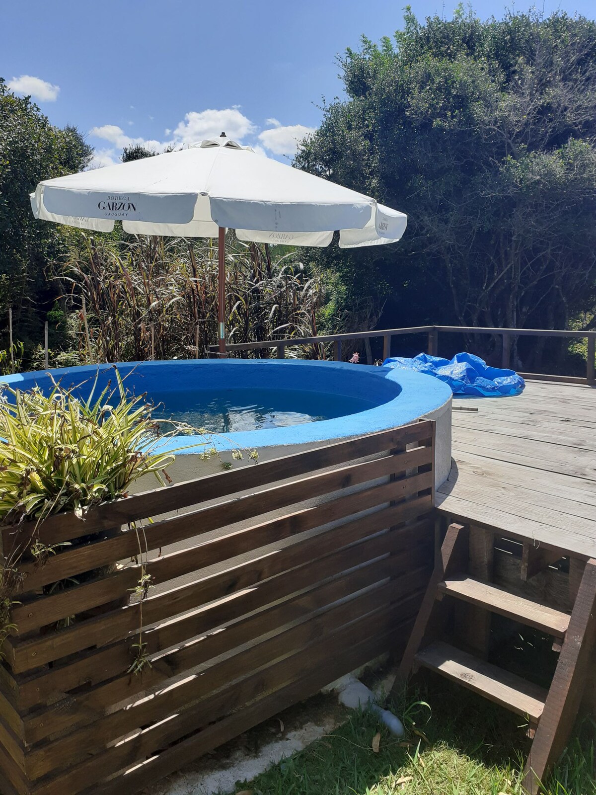 Casa, naturaleza plena, pequeña piscina y amplia vista al mar.