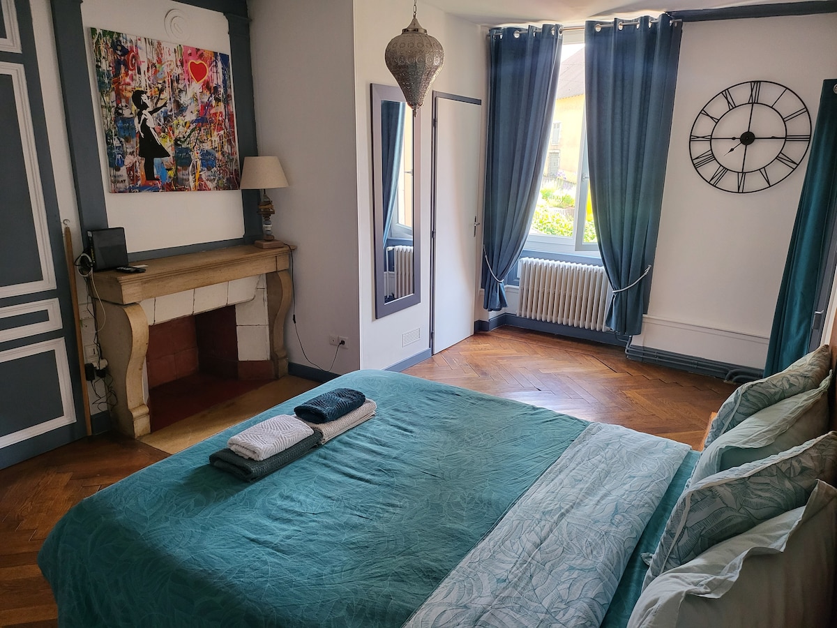 Situé en plein centre historique d'Arbois. Cet ancien hôtel a conservé son cachet d'époque. Une chambre spacieuse et lumineuse équipée d'un vidéoprojecteur. Parking et toutes commodités à proximité, idéalement situé entre la fruitière vinicole et fromagère pour les plus gourmands d'entre vous. Le balconet vous offrira une vue imprenable sur les premiers plateaux du Revermont . Au plaisir de vous accueillir dans notre magnifique village Jurassien.