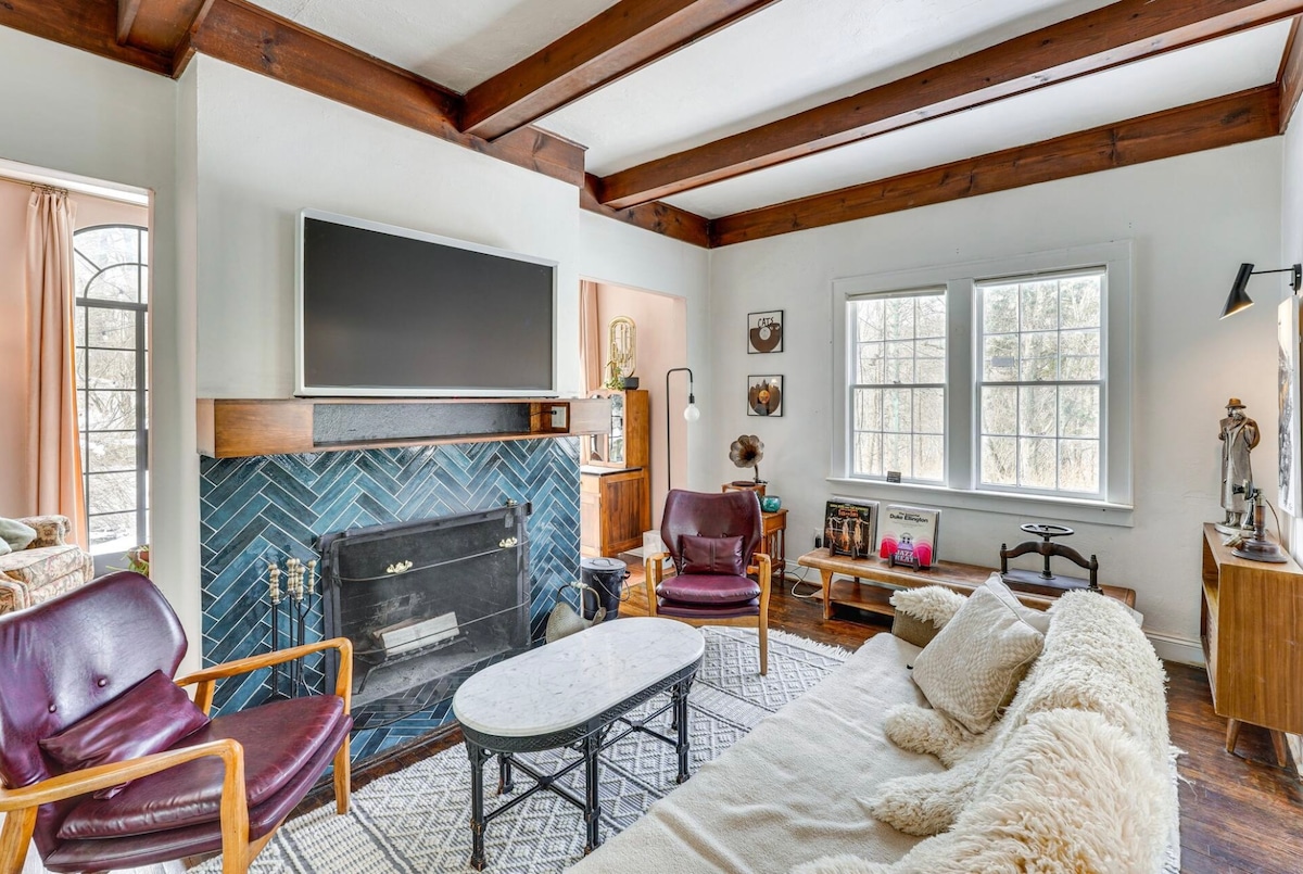 La puțin peste o oră de NYC, această cabană izolată, prietenoasă cu câinii, oferă 200 de metri de țărm privat, curte împrejmuită și solar cu vedere liniștită la lac. Stilat cu atenție cu piese adunate din călătoriile mele, îmbină luxul liniștit cu confortul modern. Relaxează-te lângă șemineu, bucură-te de vinil sau de un film, urmărește căderile de zăpadă, observă animalele sălbatice, explorează traseele din apropiere, relaxează-te lângă șemineu și odihnește-te în patul matrimonial. Romantic, liniștit, frumos retras – evadarea ta perfectă de iarnă la lac te așteaptă.