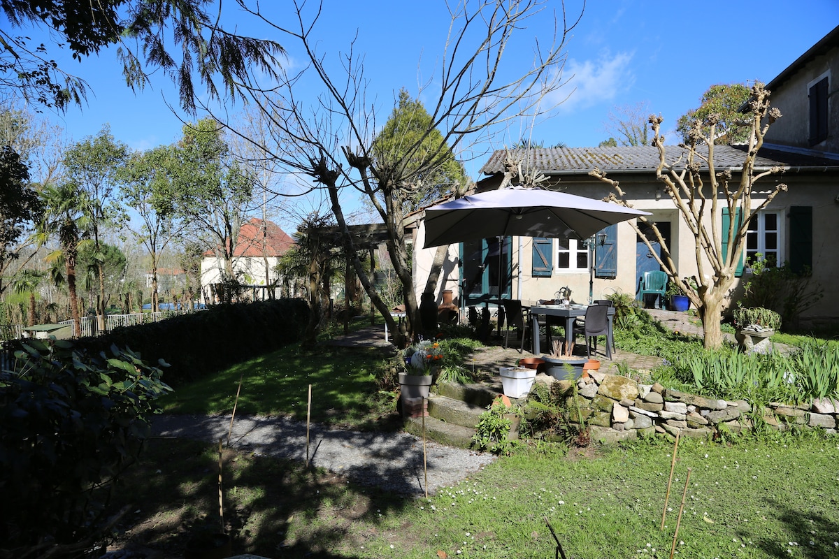 Garsonieră independentă și confortabilă (Wi-Fi, uscător de păr, TV, pat pentru copil, la cerere...). Acces direct la piscină, bucătărie de vară ( împărțită cu 2 studiouri ) cu aragaz, cuptor cu microunde, frigider și grătar disponibil (feluri de mâncare incluse). Pentru a vizita zona : Casino Gustave Eiffel și centru spa în Salies-de-Béarn (5 min), satele medievale (Sauveterre-de-Béarn 2 min distanță și Navarrenx 10 min distanță) cu biserici, muzee... Frontiera spaniolă 40 min distanță; aproape de Pélérinage St Jacques de Compostelle