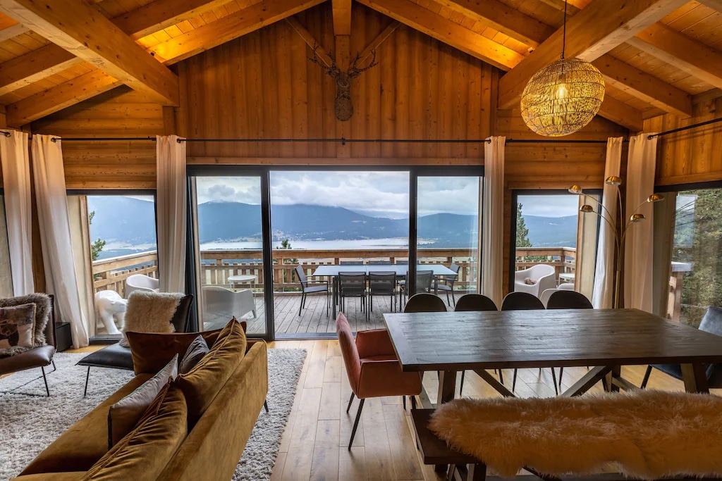 Casă arhitecturală construită din lemn și sticlă amplasată la 1000 m altitudine, la mai puțin de 3 ore de Londra (1 oră de aeroportul Carcassonne). Ferestre largi și punte mare pentru a te bucura de vederi spectaculoase asupra munților și pajiștilor. Cadru ideal pentru a savura anotimpurile: drumeții, ciclism montan, ciuperci, farfurie de căprioare... sau doar pentru a contempla peisajul uimitor. Cu tot confortul și un decor „nomad”, viața interioară este organizată în jurul șemineului central mare. Grădină și livadă pentru sieste și grătare